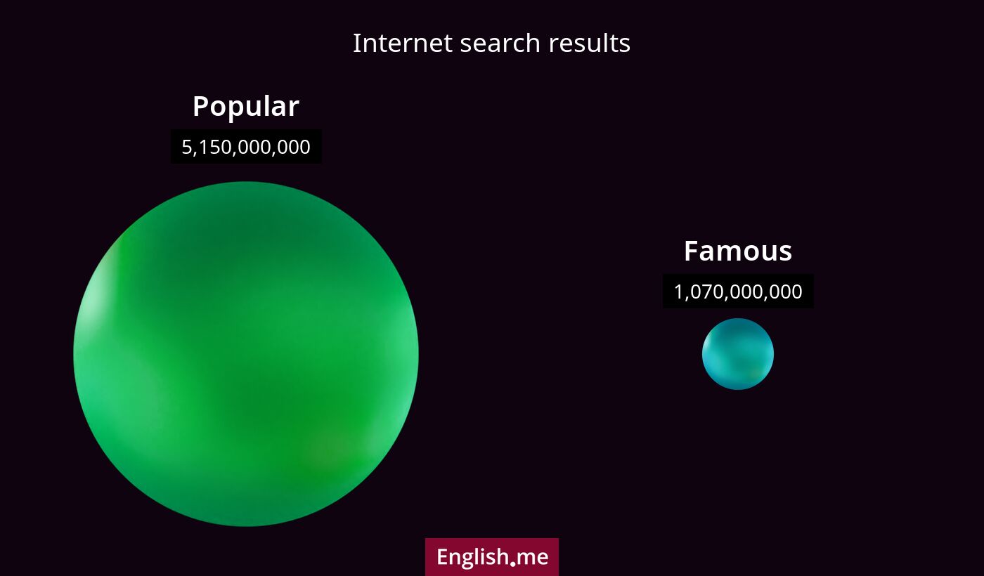 "Popular" refers to being liked, admired, or supported by many people, often emphasizing approval or acceptance. "Famous" means widely known, but does not always imply that the person or thing is well-liked, only that they are recognized by many.